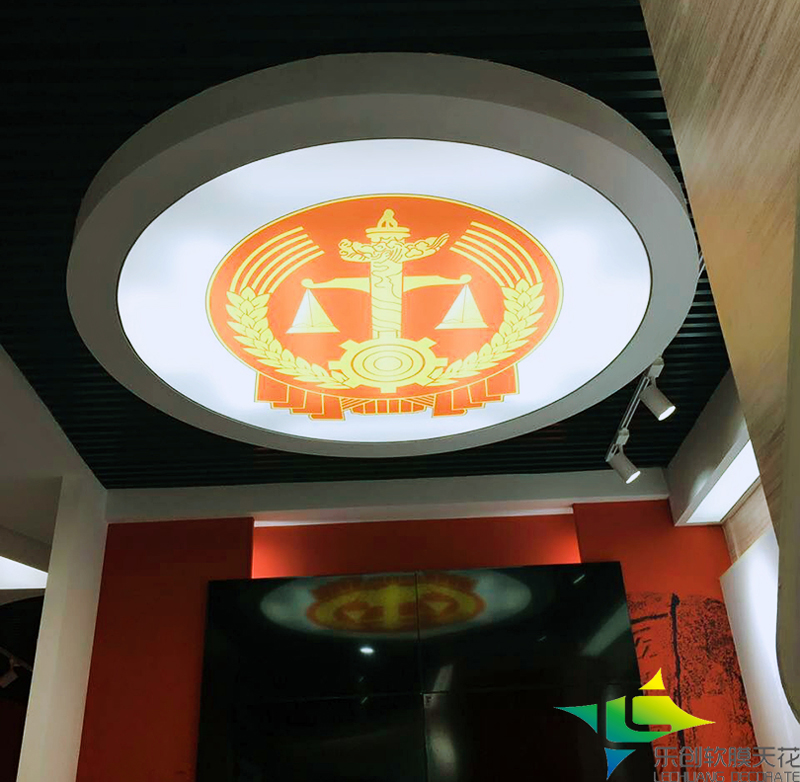 祝賀我公司泰安高鐵法院軟膜天花項目完工,高鐵法院軟膜天花安裝,采用我公司高清噴繪膜,噴繪法院徽標,結合白色透光燈帶,營(yíng)造一個(gè)莊嚴的法院環(huán)境,感謝客戶(hù)對樂(lè )創(chuàng )品牌軟膜天花的認可。